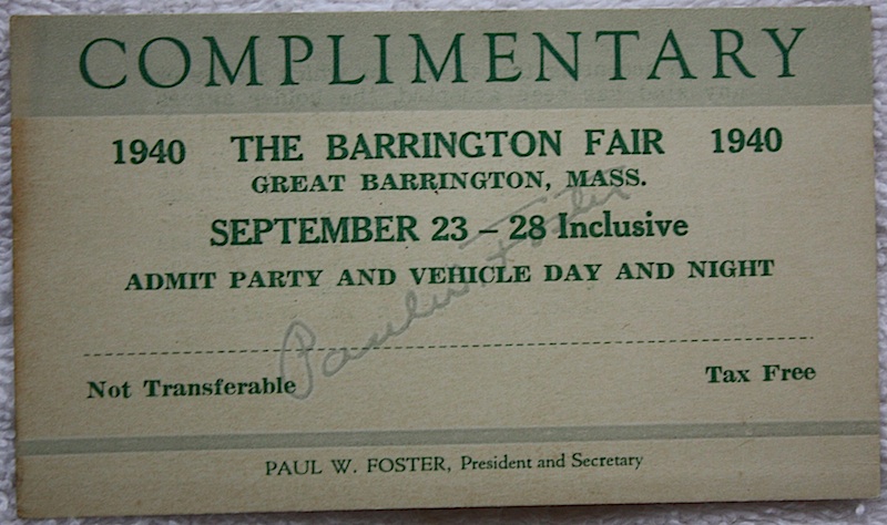 The bi-weekly feature where I pull odd things from my ephemera collection of objects found in my books returns! I hope to keep this going every other Sunday from now on. Today's is an interesting item for anyone who lives in the area of Massachusetts surrounding the Berkshires, specifically Great Barrington and the now defunct Barrington Fair.